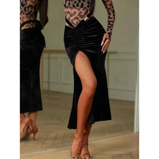 ZYMdancestyle Autumn New Latin Dance Long Skirt Stretchy Velvet Fishtail Length Adjustable Belt Tranining Practice Wear #2379