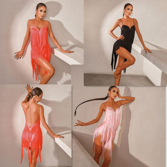 Latin Dance Dress latin dress black Tango Dress Rumba ChaCha fringe latin dresses woman back cut out