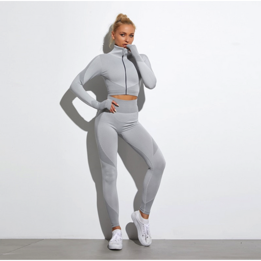 2 Pics Long Sleeve Shirts High Waist Leggings Sports Suits