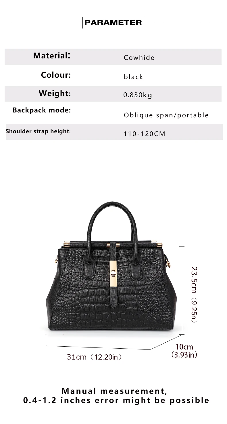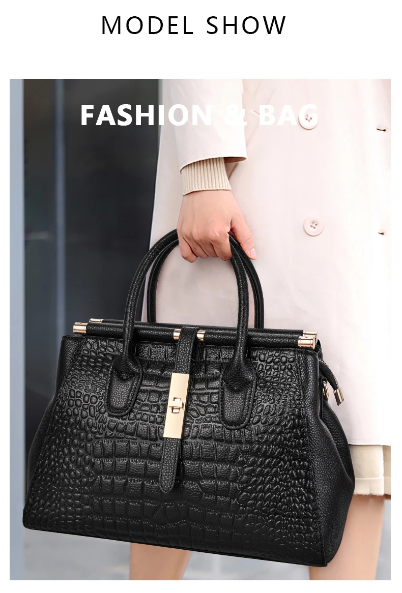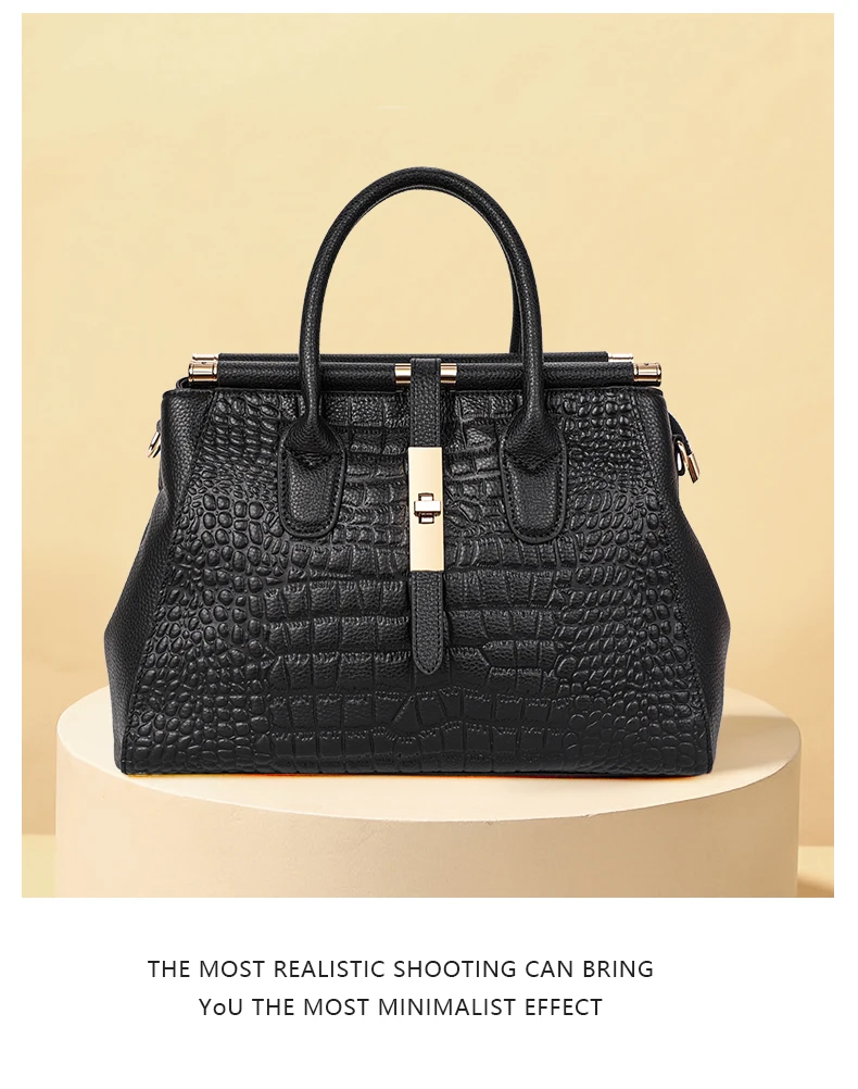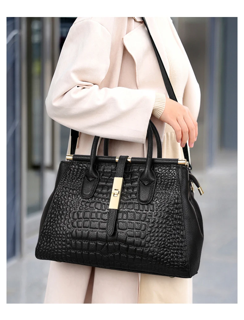 Crocodile-print leather women's bag hand bag large capacity cowhide one-shoulder cross-body bag