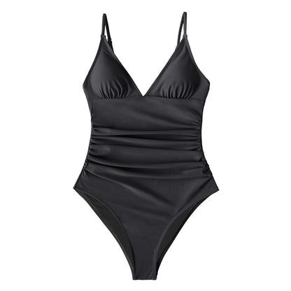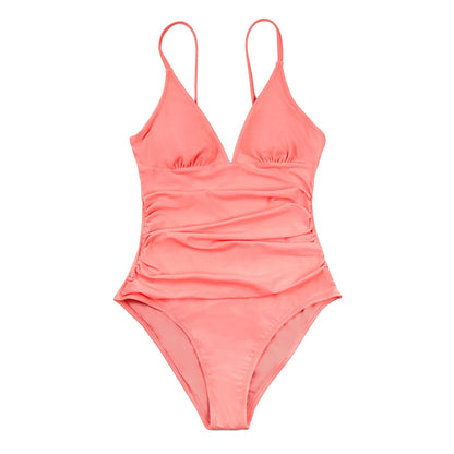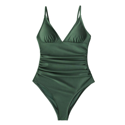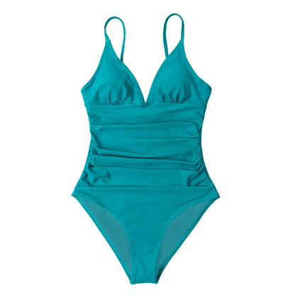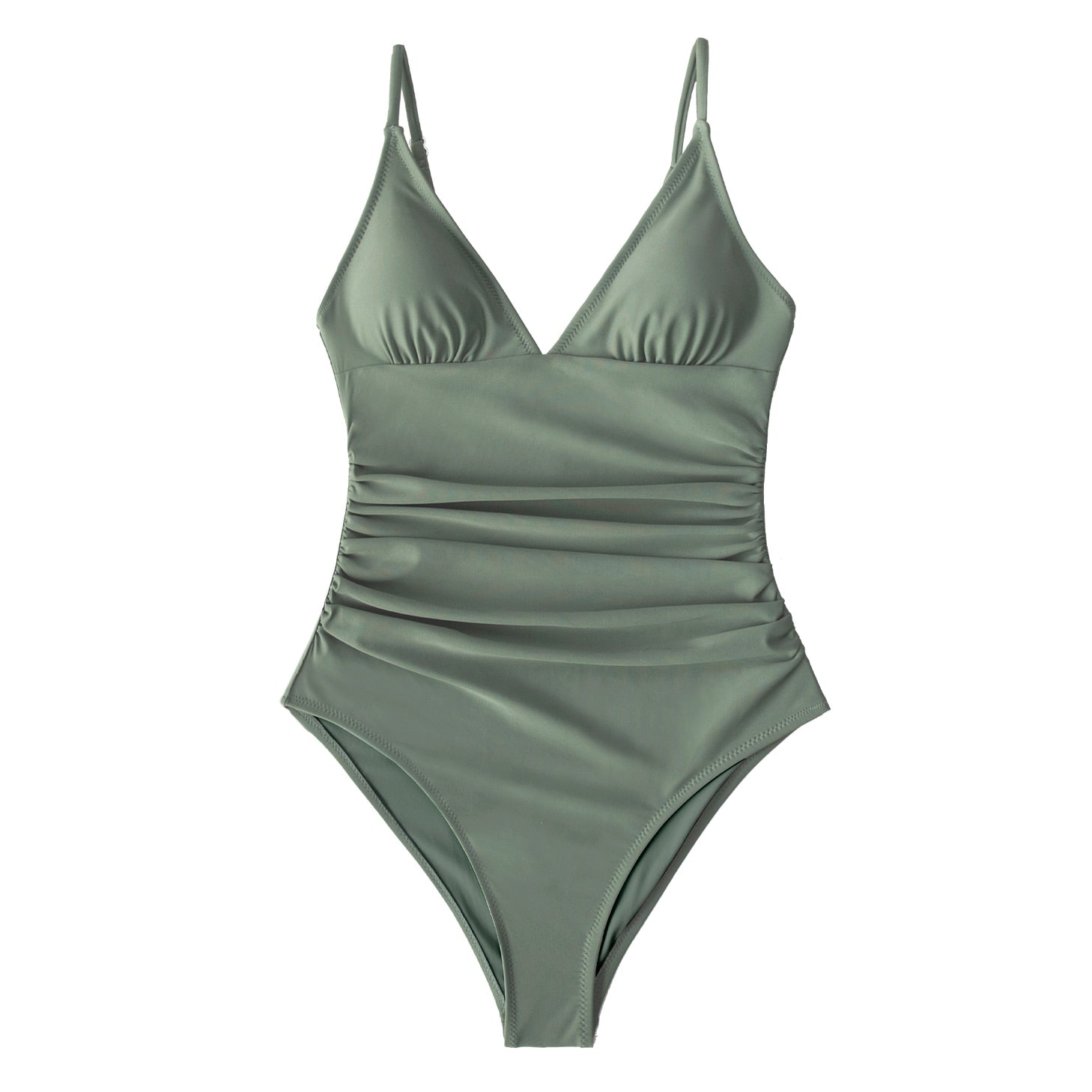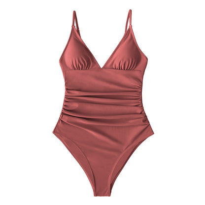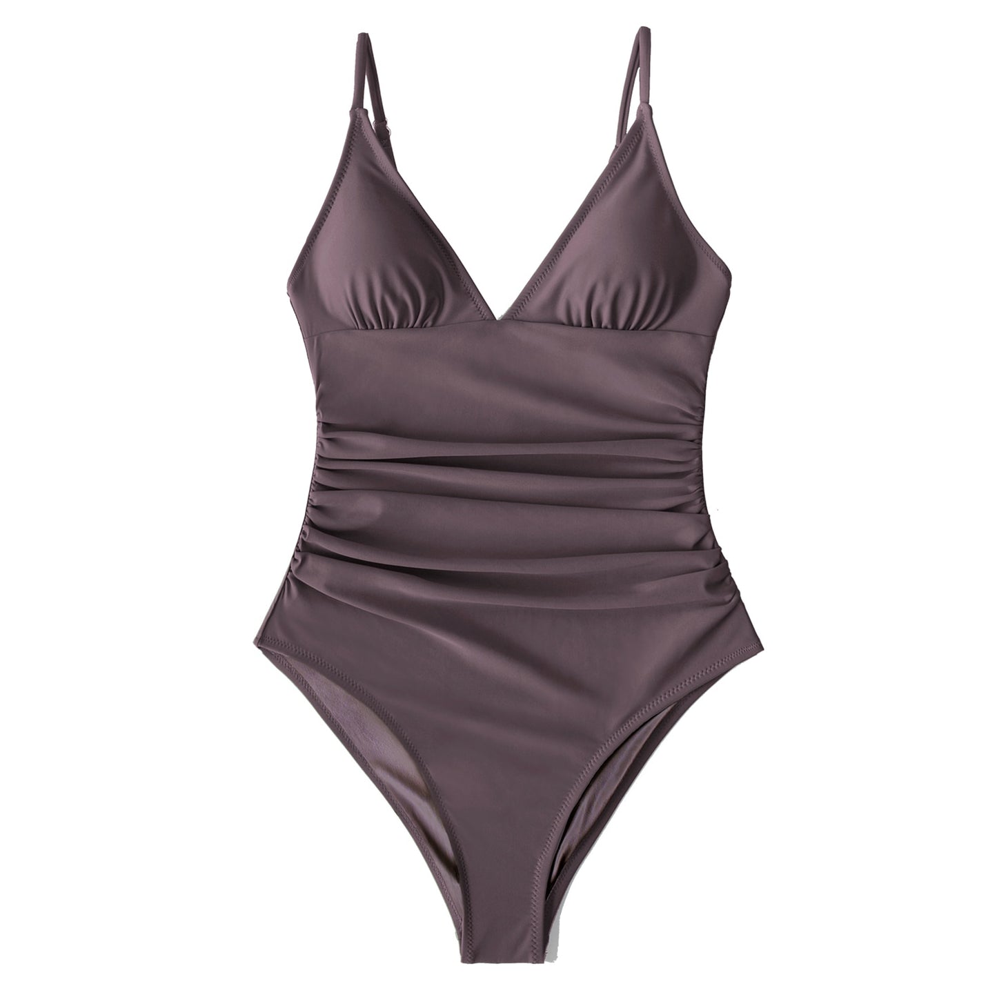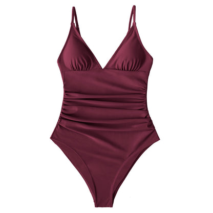 CUPSHE Solid Burgundy Shirring One-piece Swimsuit Women Deep V-neck Removable Bra Plain Monokinis 2022 New Summer Beach Swimwear