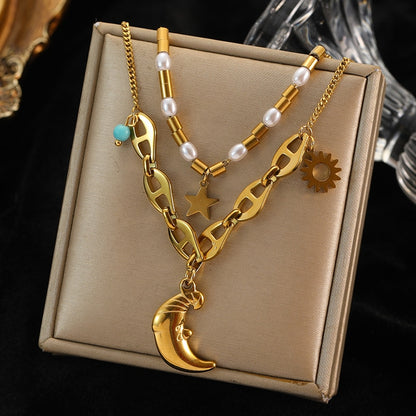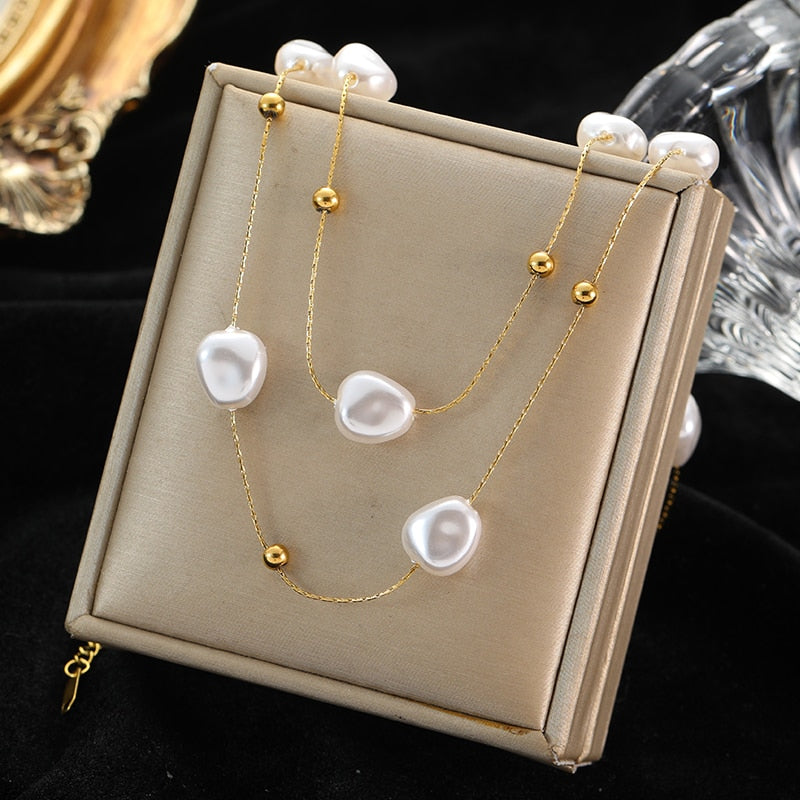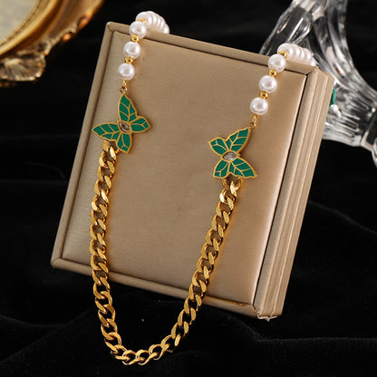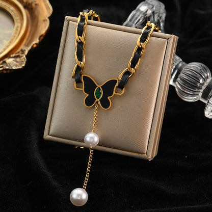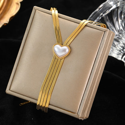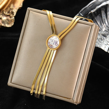 EILIECK 316L Stainless Steel Pearl Zirconia Tassel Pendant Necklace For Women Trendy Fashion Chain Choker Girls Jewelry Gifts