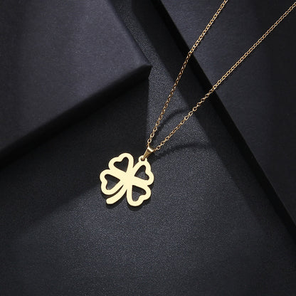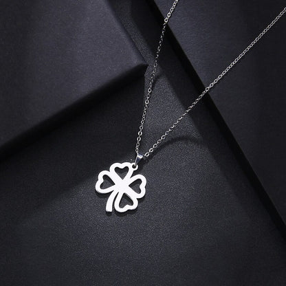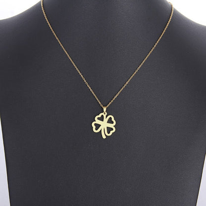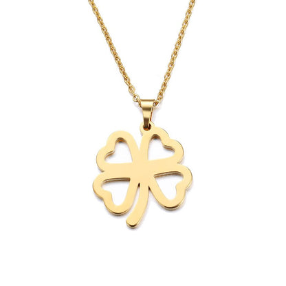 Stainless Steel Necklace For Women Man Lover's Hollow Clover Gold And Silver Color Pendant Necklace