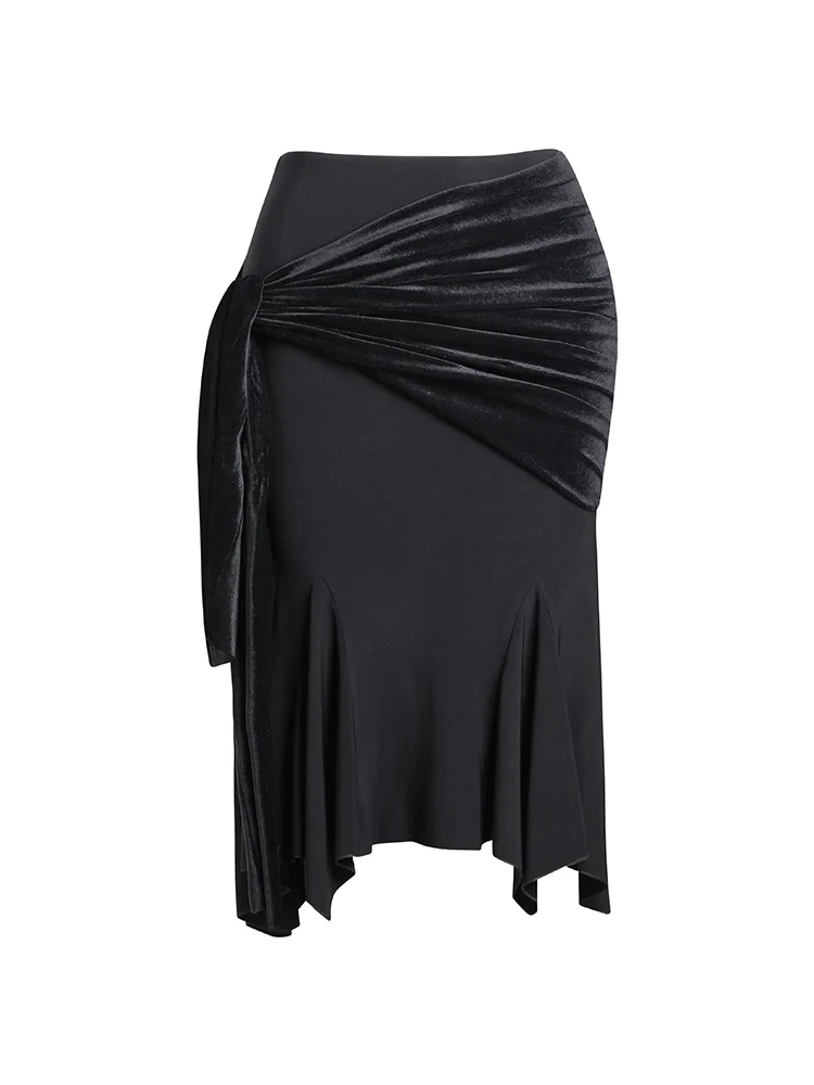 Dance in style with our glamorous Latin dance skirt, designed with a fancy split-panel hem and vibrant contrasting waistband. This charming piece not only enhances your curves but also makes a perfect waist-to-hip ratio, allowing you to move with elegance and confidence.