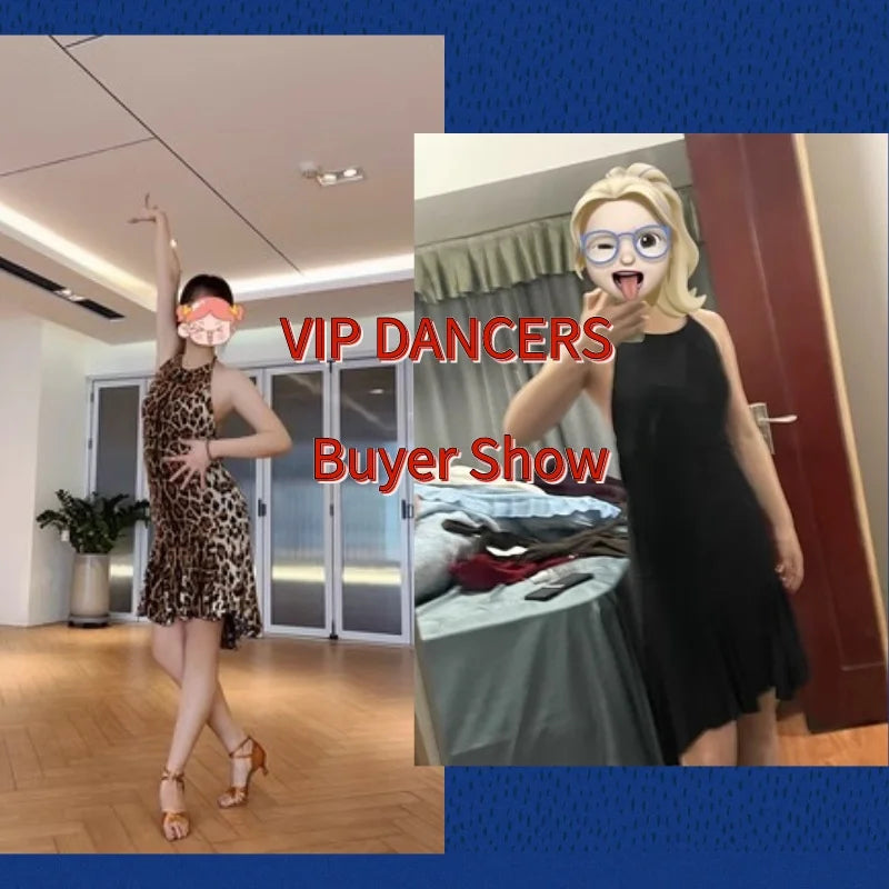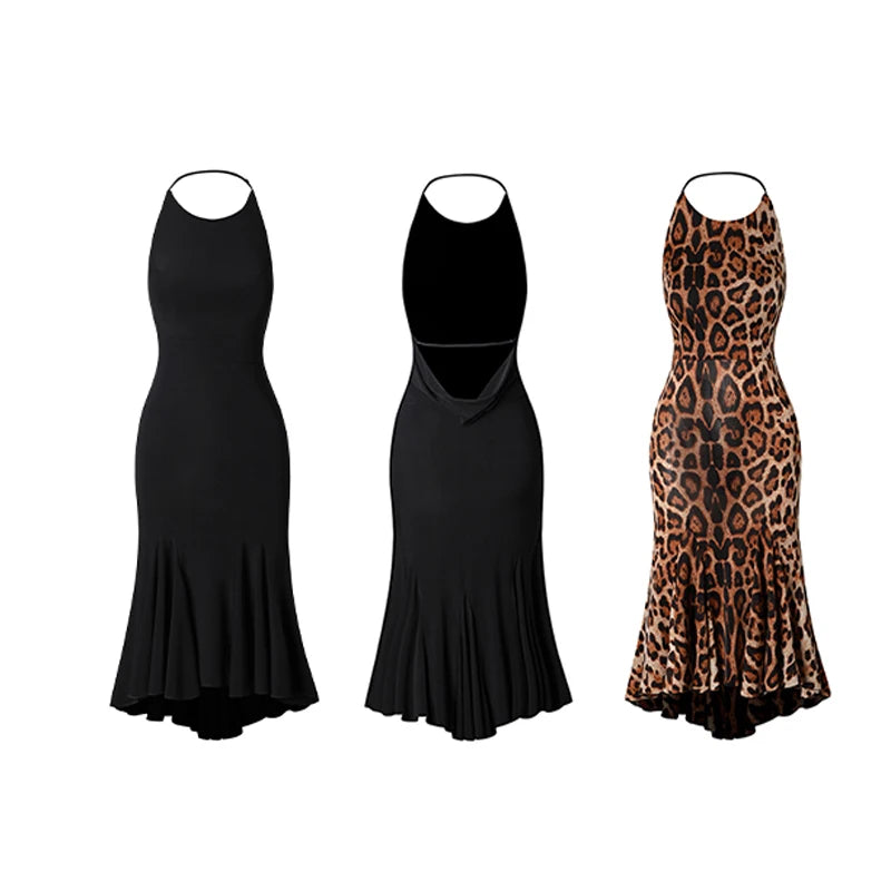 Sexy Leopard Print Backless Latin Dance Dress For Women Black Sleeveless Latin Dress Halter Ballroom Competition Dresses SL5400